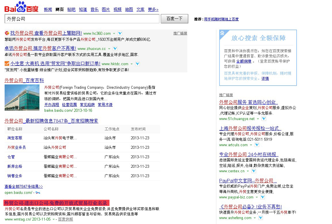 在搜索结果约为20,500,000中排名第三位。您可以在这里点击 "外贸公司"查看;