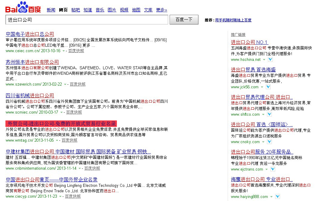 在搜索结果约为23,700,000中排名第三页第四位。您可以在这里点击 "进出口公司"查看;