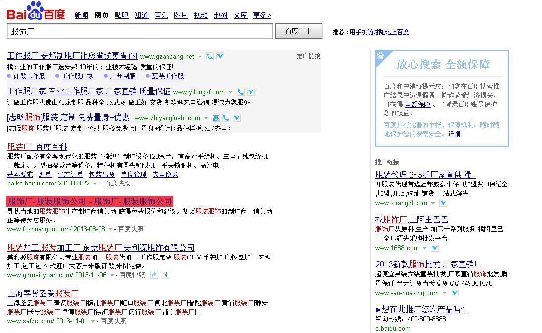 在搜索结果约为15,200,000中排名第二位。您可以在这里点击 "服饰厂"查看;