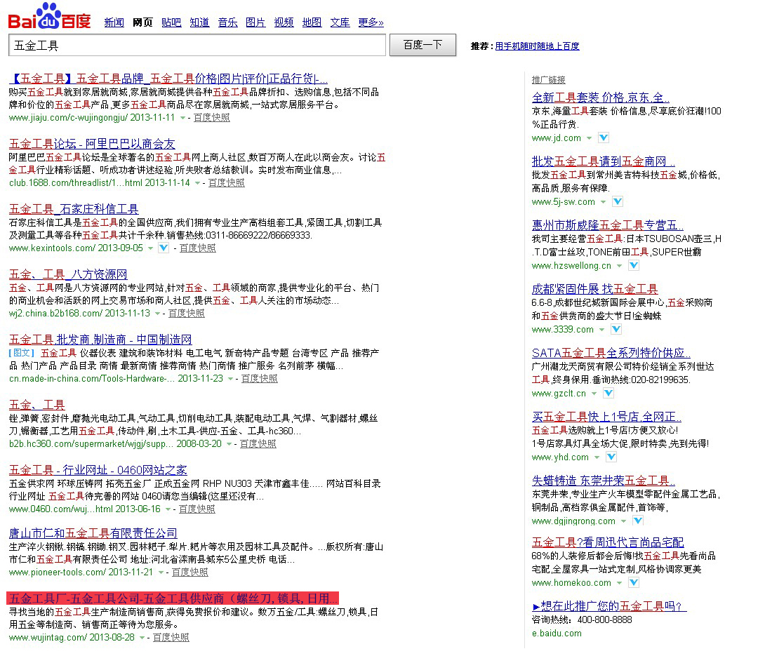在搜索结果约为69,300,000中排名第三页第九位。您可以在这里点击 "五金工具"查看;