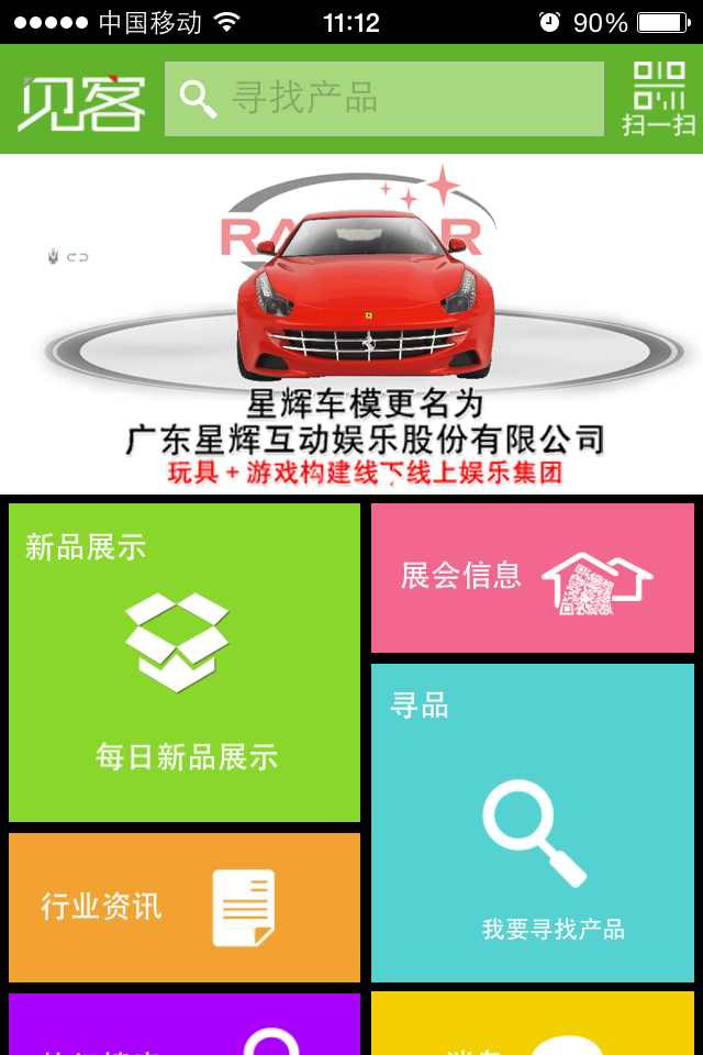 “见客手机端(APP)”的诞生让更多的玩具企业低门槛进入移动互联网世界,为玩具企业开辟了便捷、多样、高效的营销渠道;“见客手机端(APP)” 首创实时在线寻品模式:在线寻品、实时通知、新品更新、新品即时推送,全球GPS定位导航功能,创新了随时随地谈生意的模式,打破了以往其它第三方平台的时间空间局限性。其次,“见客手机端(APP)”通过网络技术将玩具企业的信息、最新产品、动态视频一一展示,通过扫描二维码自动安装的形式安装到客户的手机上,相当于把企业的名片、宣传册和产品等一次性派发给客户,客户使用次数也不受限制,从而把企业的宣传费用降到最低。最大限度地享受到“见客手机端(APP)”为企业开展移动营销带来的便捷。