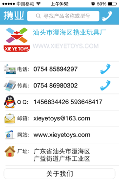 二维码下载广东省汕头市澄海携业玩具厂自2002年创办至今,本着“诚信为本、精益求精、质量取胜”的经营宗旨,凭着创新的设计思路,独特的经营理念,规范的管理体系,成功塑造了品牌和市场形象。近期又开发研制出多种新型功能的玩具。并在国内成立营销部,专门针对国内各地区的销售进行跟踪管理以及售后服务。